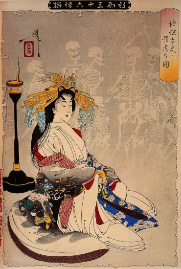 Crazes come and go. Today, everyone wants bleached out, movie-star sparkly teeth. Therefore, it might seem shocking at first glance, but the history of tooth blackening in Japanese culture is an old and storied one. The practice died out in the Meiji era, 1868-1912, but you can still see Maiko’s and Tayu of today adhering to the practice. Ladies at the imperial court in Kyoto and even ordinary women engaged in blackening their teeth. The allure was related to admiration of black, shining lacquer. Married women were required to blacken their teeth through a mixture of iron and vinegar, mixed with tea powders that would stick to the teeth for days. It was a mark of maturity amongst women, when motherhood and wifely duties were taken up.